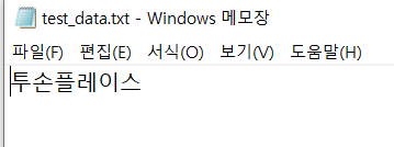 먼저 임의의 text파일을 작성해보았다. text 파일 내부에는 투손플레이스라는 문자열이 입력되어 있다. 파이썬 open( )함수를 통해 이 text 파일을 열고 입력된 첫줄을 읽어올 것이다.