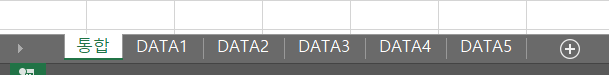 Concept 1. 데이터가 있는 시트(DATA1,2,3,4...)와 "통합"시트가 한 파일에 존재한다. DATA 시트는 아래 이미지로는 5개지만 더 많아져도 상관없다.