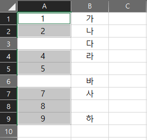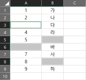 #활성화 된 시트에서 사용영역 중 빈칸만 선택