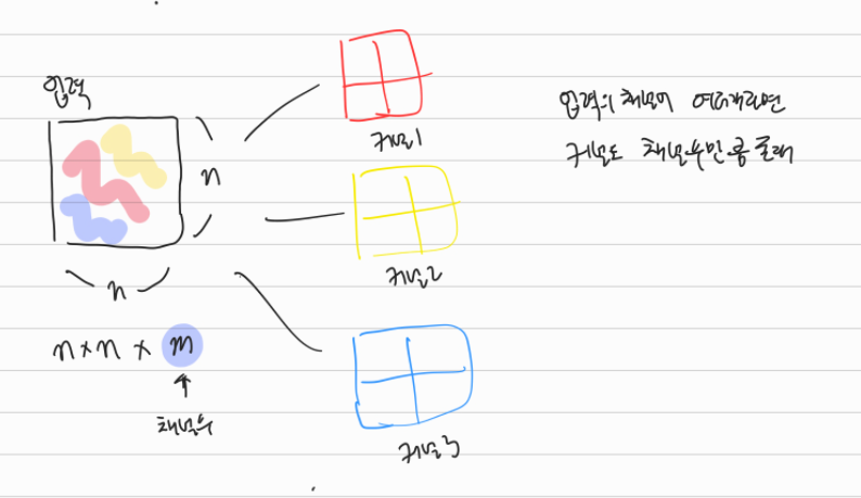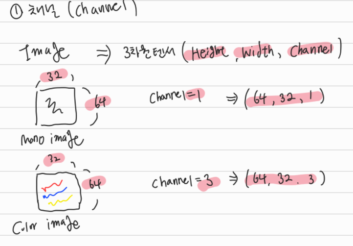 -. 채널은 입력의 3차원 정보를 의미 함.