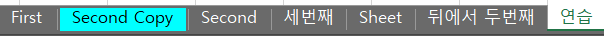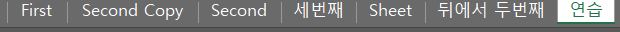 ['First', 'Second', '세번째', 'Sheet', '뒤에서 두번째', '연습']
