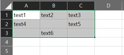 이번 포스팅에서는 엑셀 셀 범위 선택에 대해 공부한 내용을 정리했다. 먼저 아래코드와 같이 엑셀 "통합문서"를 생성하고 임의의 문자 데이터를 입력. 아래 코드는 이전 포스팅에서도 충분히 설명하였으므로 따로 설명은 생략한다.