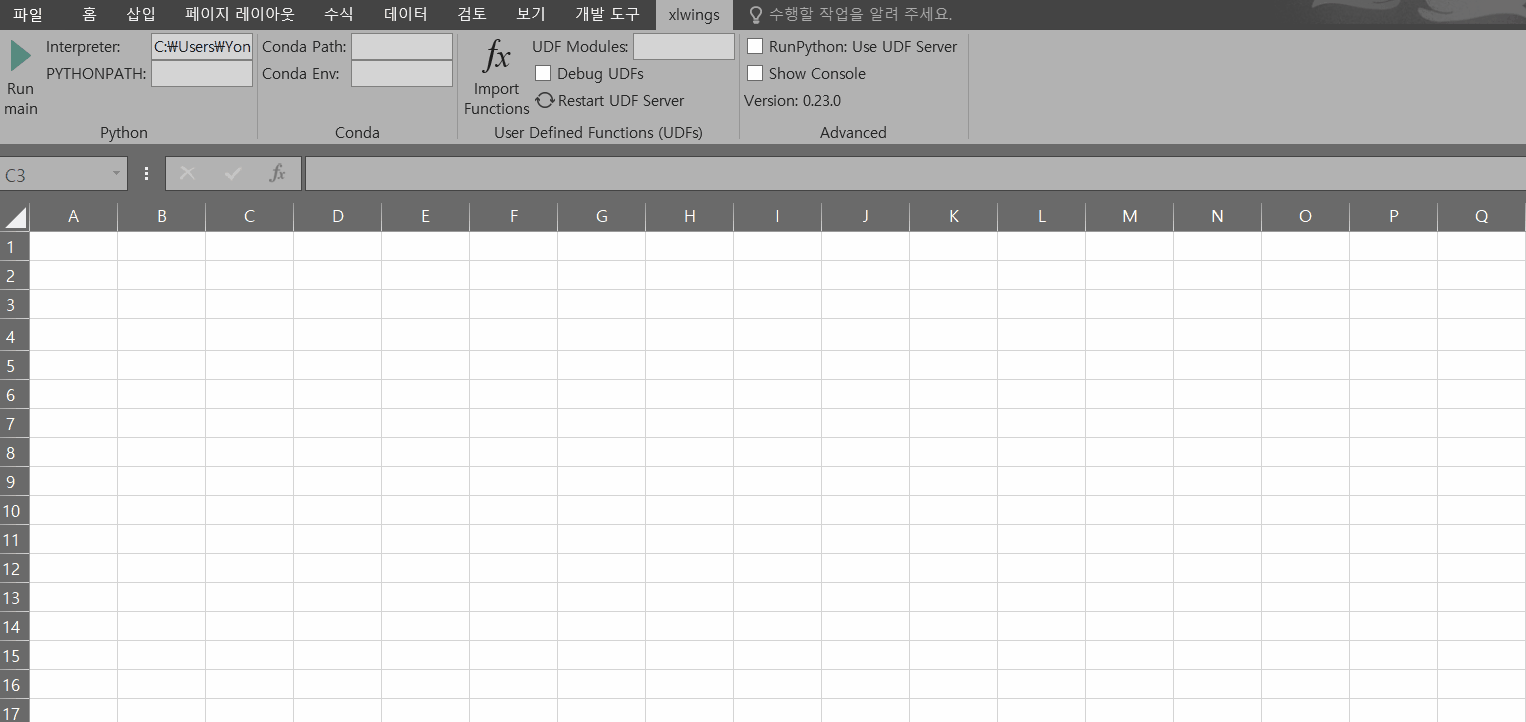 xlwings 사용가이드에서 PYTHONPATH라는 변수를 Setting하면 위치가 다른 파이썬 파일도 import할 수 있다고 설명되어 있다. 위 내용은 참고만 하고 실제 방법을 알아보자.
