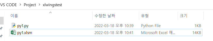 -. py1.xlsm : 엑셀 매크로 파일, 이 파일에서 py1.py를 불러 사용할 예정