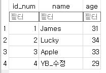 -. 결과를 보면 id_num=1인 row data가 삭제되었다.
