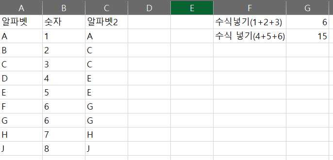 ws['F1'] = "수식넣기(1+2+3)"