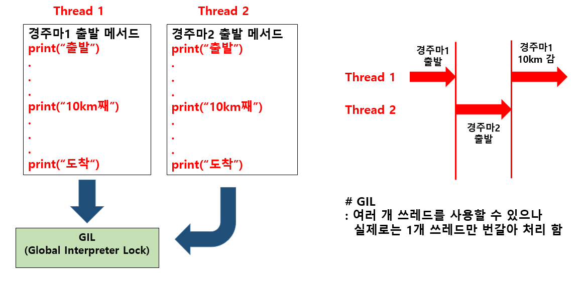 이전편에서 파이썬 쓰레드와 GIL(Global Interpreter Lock)이라는 개념을 정리했다. 요약하자면 쓰레드는 프로세스 내에서 여러개의 동작을 동시에 할 수 있게 한다. 파이썬에서는 멀티 쓰레드를 지원하나 GIL 때문에 쓰레드를 동시 동작할 수는 없고 여러개의 쓰레드를 번갈아 실행한다고 했었다.