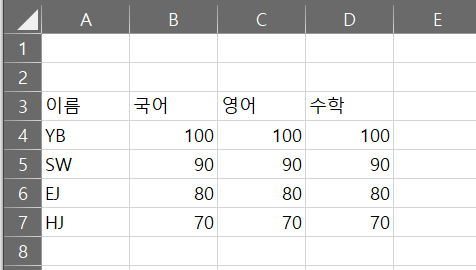df = pd.read_excel("df_test.xlsx", engine = "openpyxl", names=['Name', "Korean", "English","Math"])