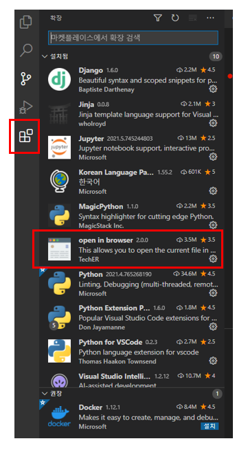 -. Open in Browser는 개발 중인 HTML 파일을 손쉽게 확인해줄 수 있는 확장 프로그램이다.