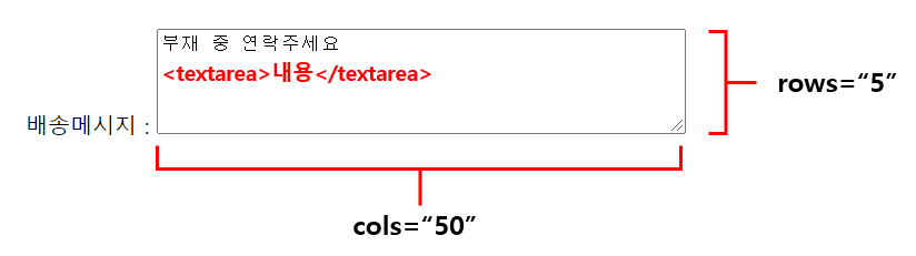 배송메시지:<textarea cols="50" rows="5"></textarea>