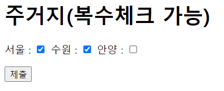 안양 : <input type="checkbox", name="address", value="anyang" checked>