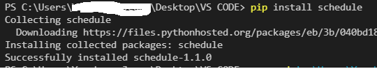 일단 schedule 모듈은 내장 모듈이 아니기에 pip install을 통해 설치해준다.(pip install schedule)