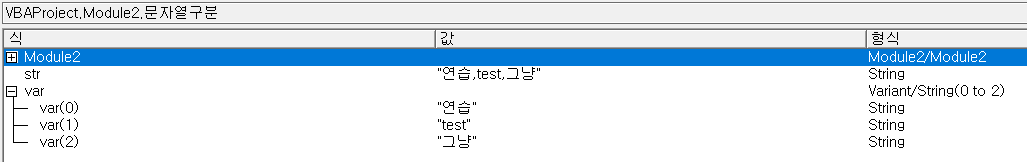 Dim varData As Variant 'Split함수로 데이터를 담을 복합형 변수