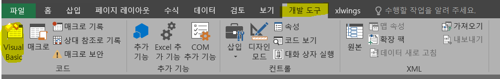 개발 도구 매뉴가 없다면 파일-옵션-리븐사용자 지정 매뉴에서 '개발도구' 매뉴를 활성화시켜줘야 한다. 이 부분은 다른 블로거 분이 잘 정리해주신 자료가 있어 하단에 참고링크로 첨부한다.