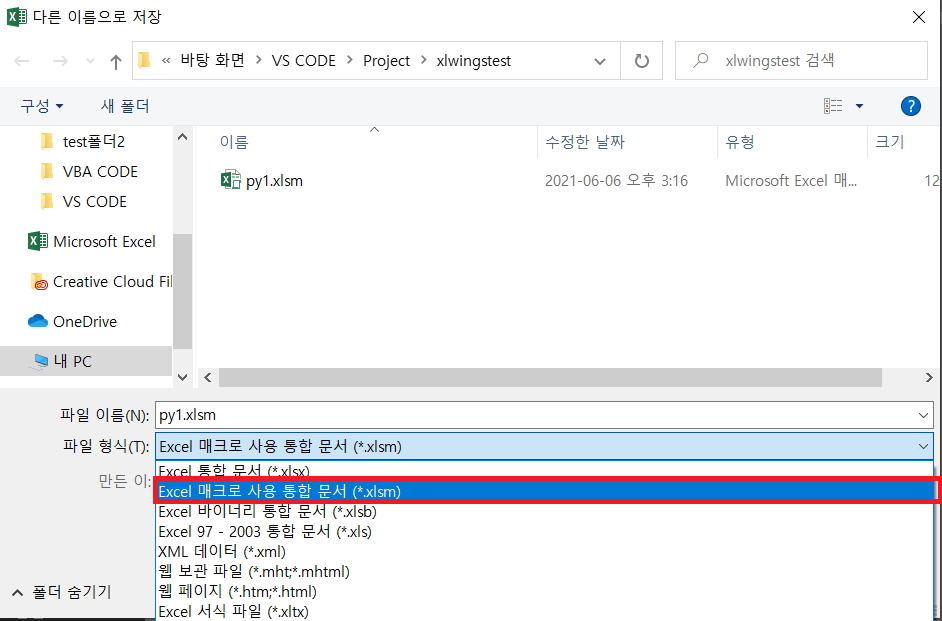 (참고링크 : 2021.06.06 - [코딩/Python] - [Python/파이썬] 파이썬에서 엑셀 VBA 동작시키기 - xlwings 모듈)