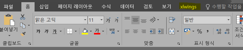 정상적으로 xlwings를 추가하였다면 아래와 같이 xlwings (xlwings.xlam) 이 추가된다.